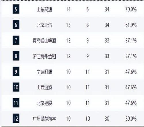 宁波队山西队北控队三队同为10胜11负,形成“三足鼎立”之势,排名随时可能互换。其中,北控队连续爆冷击败广东与青岛,状态火热,成为本赛季最大黑马之一。广州队以10胜10负守住季后赛门槛,胜率刚好过半,是“生死线”上的典型代表。