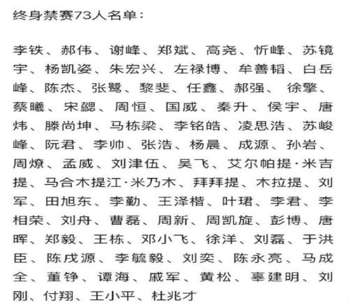 国家体育总局、公安部、中国足协联合处罚,半数球队新赛季将被扣分,73人遭终身禁赛。共13家俱乐部受惩。中超16支球队中有9支,外加中甲4支球队,因涉及多年假球、非法赌球行为遭到处罚,新赛季将被扣分。中超三连冠得主海港被扣5分,申花、浙江、国安、三镇等队都遭处罚。
